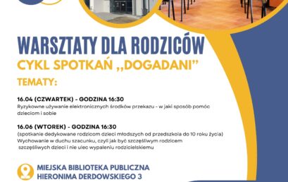 Szanowni Państwo, zapraszamy do udziału w bezpłatnych i otwartych warsztatach pn. „Dogadani”, organizowanych przez Urząd Miasta w Redzie przy wsparciu Miejskiego Ośrodka Pomocy Społecznej w Redzie. Już drugie spotkanie pt.: Ryzykowne używanie elektronicznych środków przekazu – w jaki sposób pomóc dzieciom i sobie, odbędzie się 16 kwietnia 2026 r. o godz. 16:30 w Miejskiej Bibliotece […]