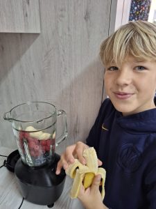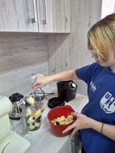 Na ostatnich zajęciach kulinarnych, zamieniliśmy się w prawdziwych mistrzów blendera. Przyrządzaliśmy owocowo- warzywne koktajle, pełne witamin, energii i …..śmiechu.