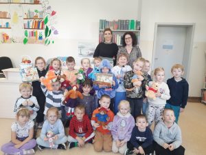 Podczas spotkania dzieci wysłuchały znanej i lubianej bajki „Czerwony Kapturek”. Następnie wzięły udział w zabawie, podczas której odpowiadały na zagadki dotyczące postaci z bajek przygotowane przez panie bibliotekarki. Przedszkolaki z ogromnym zaangażowaniem rozpoznawały bohaterów i z entuzjazmem dzieliły się swoimi skojarzeniami. Na zakończenie zajęć każde dziecko otrzymało kolorowankę nawiązującą do omawianych bajek.