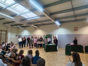 Jednym z głównych punktów programu było przedstawienie „Sąd nad książką”, przygotowane przez uczniów klas ósmych. Występ spotkał się z dużym uznaniem i przypomniał wszystkim, jak ważną rolę odgrywają książki w naszym życiu.