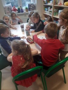 Po wysłuchaniu opowiadania przedszkolaki aktywnie uczestniczyły w krótkiej pogadance na temat życzliwości, dobrych zachowań i wzajemnego szacunku. Dzieci chętnie dzieliły się przykładami miłych gestów, które mogą sprawić radość innym.
