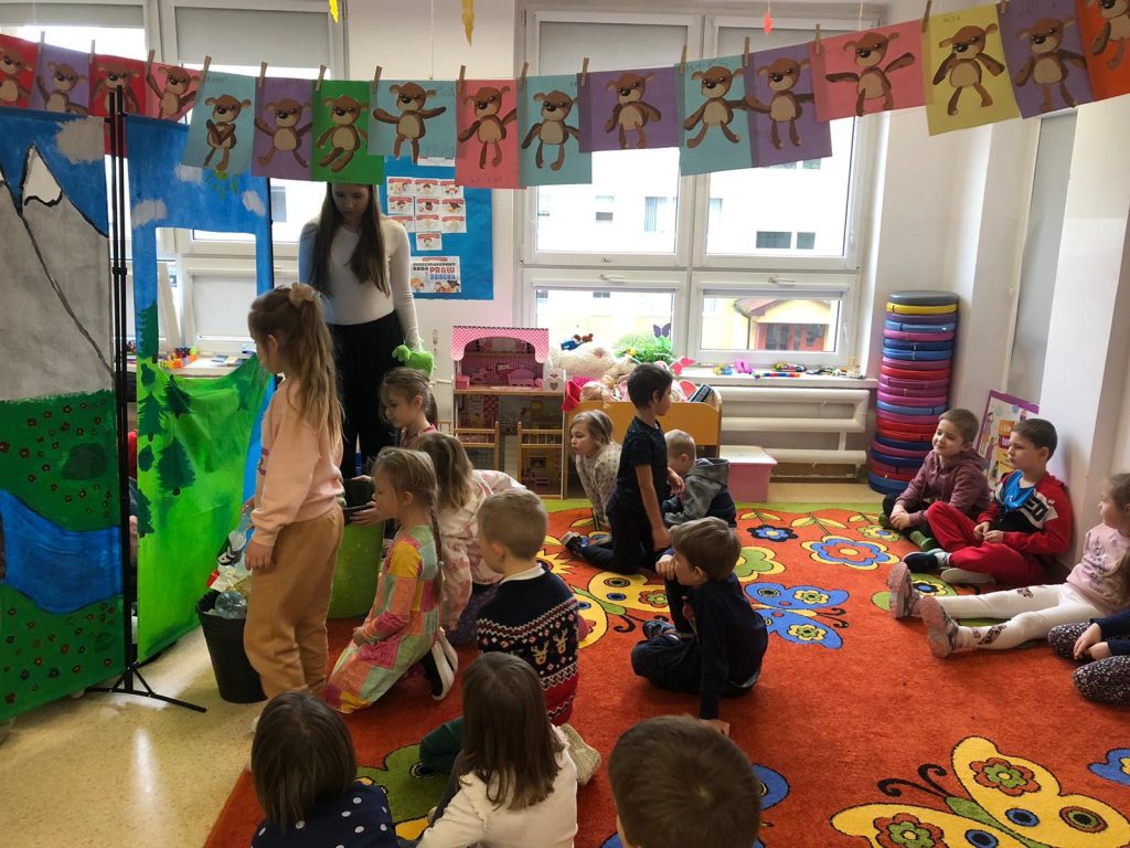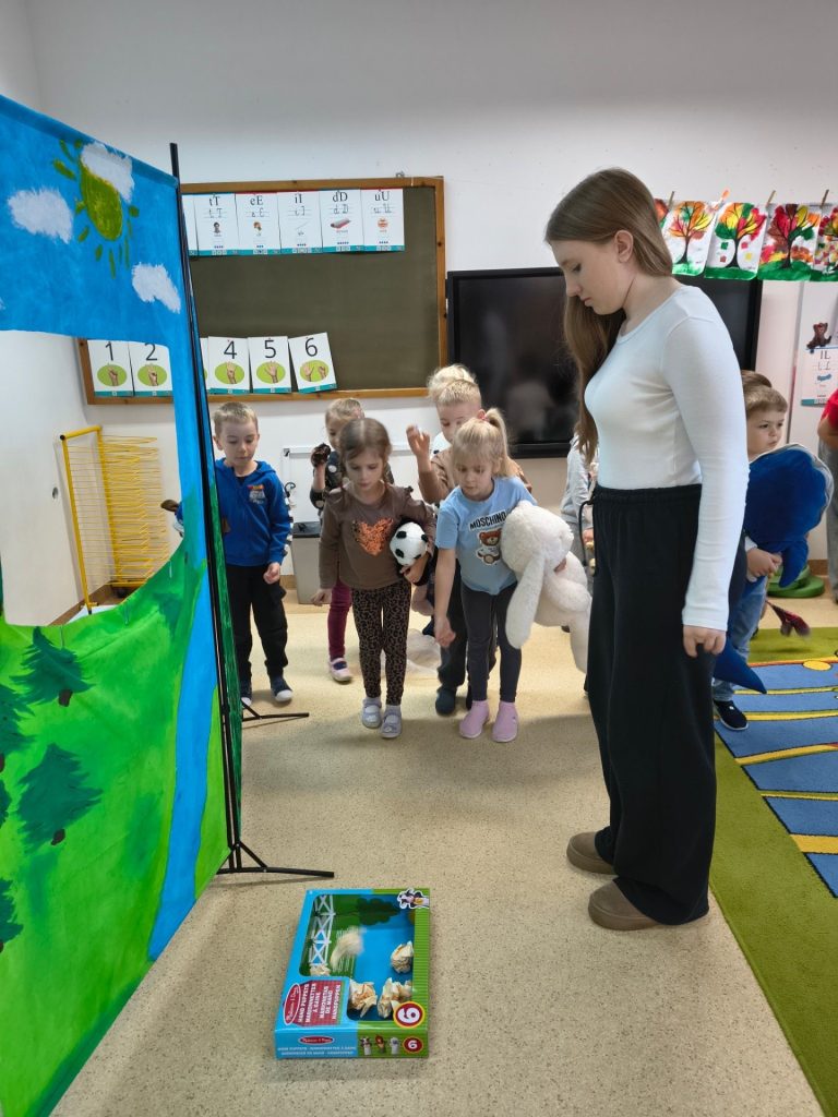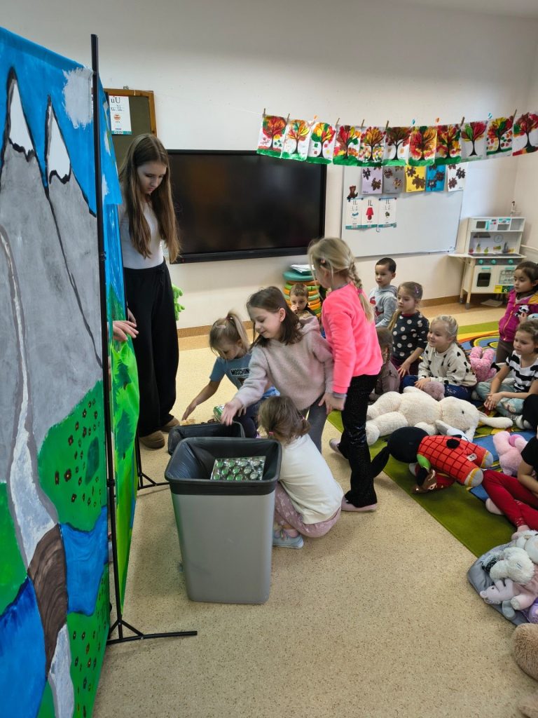 Po zakończonym przedstawieniu przygotowano również różnorodne zabawy edukacyjne. Ich celem było uświadomienie najmłodszym, jak ważna jest ochrona środowiska i odpowiedzialne korzystanie z zasobów naturalnych. Dzięki aktywnym formom nauki dzieci mogły utrwalić zdobyte wiadomości i lepiej zrozumieć, jak mogą dbać o otaczający je świat.