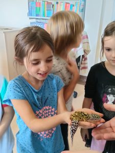 Na podsumowanie spotkań aktywu bibliotecznego wybraliśmy się do parku miejskiego, aby obejrzeć biblioteczkę plenerową. Uczniowie przeglądali zgromadzone w niej książki. Z zasobów biblioteczki może skorzystać każdy. Można książkę wypożyczyć na chwilę i poczytać na ławce albo zabrać na dłużej i zwrócić po przeczytaniu. Działa tu zasada „weź książkę, oddaj książkę”.