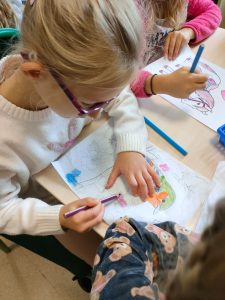 Przed samymi Świętami Wielkanocnymi bibliotekę odwiedzili uczniowie kl. O a. Dzieci zapoznały się z opowiadaniem B. Eychler „Wielkanocny mazurek”. Po wysłuchaniu historyjki uczniowie rozmawiali o zwyczajach wielkanocnych, a następnie kolorowały jajka tworząc na papierze piękne barwne pisanki.