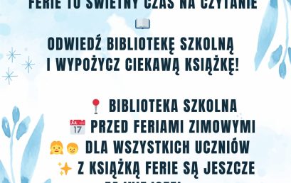 📚 OGŁOSZENIE – AKCJA CZYTELNICZA 📚 „Wypożycz książkę na ferie!” Zapraszamy wszystkich uczniów do udziału w akcji czytelniczej organizowanej przez bibliotekę szkolną. Ferie zimowe to doskonały czas na odpoczynek, a książka może być wspaniałym towarzyszem wolnych dni ❄️📖 👉 Przyjdź do biblioteki 👉 Wybierz ciekawą książkę 👉 Wypożycz ją na ferie i zabierz w świat […]