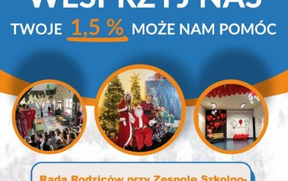 📢 Drodzy Rodzice! Z radością informujemy, że Rada Rodziców przy Zespole Szkolno-Przedszkolnym Nr 1 w Redzie nawiązała współpracę z Fundacją „Młodzi-Młodym” w ramach programu 1,5% podatku ❤️ Dzięki temu możecie wesprzeć nasze działania, przekazując 1,5% swojego podatku lub dokonując dobrowolnej darowizny – środki trafią na cele statutowe naszej Rady Rodziców. **Wpływy z tegorocznej zbiórki planujemy […]
