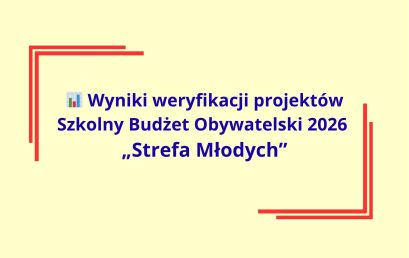 Po zakończeniu etapu zgłaszania oraz weryfikacji projektów do Szkolnego Budżetu Obywatelskiego informujemy, że spośród 4 zgłoszonych propozycji do dalszego etapu zakwalifikowano 3 projekty. 📋 Projekty dopuszczone do głosowania: 1. 💺 Strefa Relaksu Ucznia – nowoczesne siedziska do przestrzeni szkolnej Stworzenie komfortowej strefy wypoczynku z nowoczesnymi siedziskami, poprawiającej wygodę i estetykę przestrzeni szkolnej. 2. 💻 Cyfrowa […]