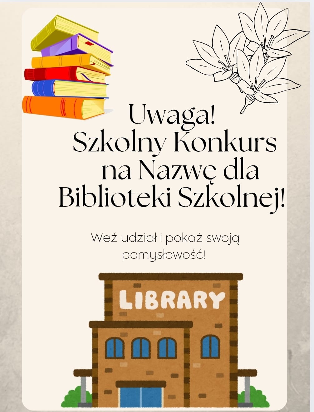 Wszystkich uczniów naszej szkoły zapraszamy do udziału w szkolnym konkursie na Nazwę Biblioteki Szkolnej. Zachęcamy do współtworzenia miejsca i przestrzeni jako „serca szkoły” ważnego dla całej społeczności szkoły!
