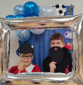 We wtorek 30 września nauczyciele bibliotekarze włączyli się w obchody Dnia Chłopaka. Ciekawość i oczekiwanie, dobra zabawa i radość – takie przeżycia towarzyszyły chłopcom w tym wyjątkowym dla nich dniu. Chętne osoby mogły zrobić sobie zdjęcie w zorganizowanej fotobudce. Fotki uatrakcyjniły śmieszne gadżety. Na chłopców czekały także zakładki do książek, medale oraz słodki poczęstunek.