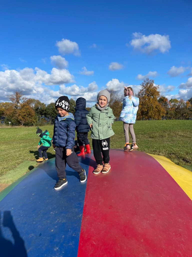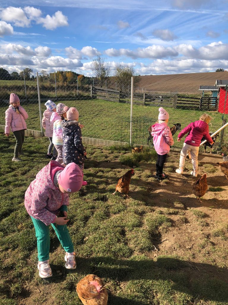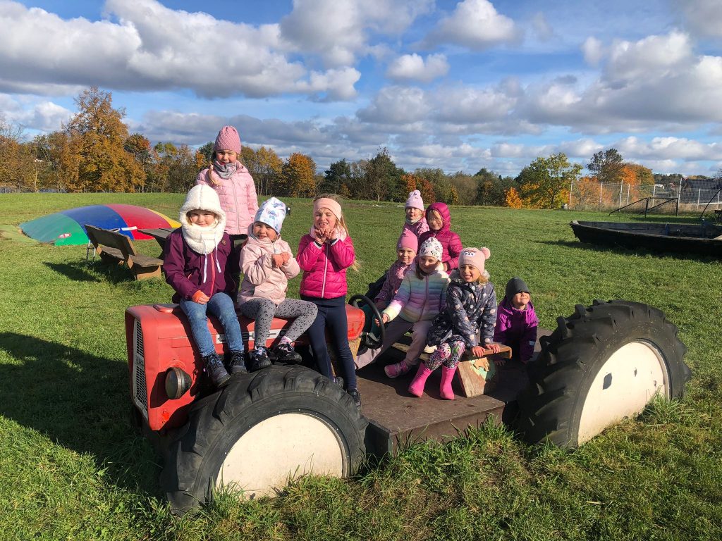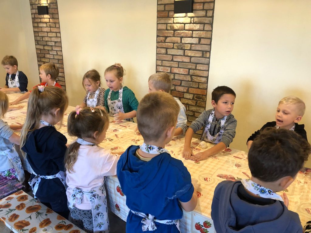 Dnia 13 września przedszkolaki z grupy Tygryski” i ,,Motylki” udały się na wycieczkę do gospodarstwa agroturystycznego “Sołtysówka” w Łapalicach. Jej celem było przybliżenie dzieciom warunków życia na wsi, poznanie zwierząt gospodarskich oraz regionu Kaszub. Na dzieci czekało mnóstwo atrakcji: pieczenie bułeczek, karmienie zwierzątek, przejażdżka wozem drabiniastym, robienie ziemniaczanych jeżyków i pieczątek i przepyszne frytki. Na zakończenie każde dziecko otrzymało Order Małego Farmera.