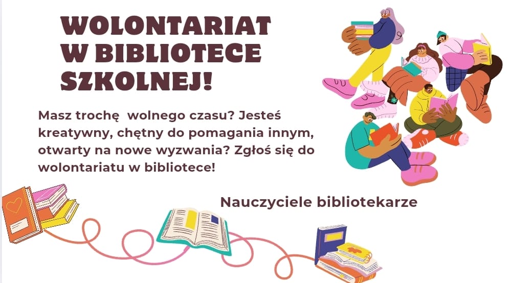 Jeśli chcecie zrealizować godziny wolontariatu zapraszamy Was do biblioteki szkolnej.