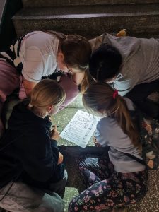 Tego wieczoru nasza szkoła zamieniła się w miasteczko Valleby- miejsce, gdzie toczy się akcja książek, a uczniowie wcielili się w role małych detektywów. Uczestnicy spotkali się w bibliotece, gdzie czekało na nich pierwsze zadanie do rozwiązania oraz zagadka, dokąd należy udać się w dalszą podróż po Valleby. Przy każdym z miejsc ukryta była wskazówka, gdzie znajduje się kolejny cel detektywów. W ten sposób uczniowie poznali pływalnię, muzeum, gazetę, hotel, pocztę oraz cukiernię – miejsca, w których zagadki rozwiązywali książkowi bohaterowie. W każdym z tych miejsc na uczniów czekały tajemnice do rozwiązania – rebusy, krzyżówki i łamigłówki tematycznie związane z serią książek o młodych detektywach. W ten sposób uczniowie mogli lepiej poznać bohaterów serii oraz ich miasteczko.