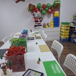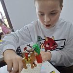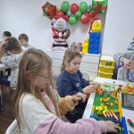 Dzieci  uczestniczyły w warsztatach konstrukcyjnych z elementami LEGO® robotyki.  Podczas, których przy pomocy wizualnego języka kodowania powoływały roboty do życia, rozwijając zdolności motoryczne i umiejętności poznawcze. Lego choinki, klockowe cukrowe lizaki, figurki Mikołajów i reniferów, lego-prezenty sprawiły, że na planszach konstrukcyjnych zapanował bardzo świąteczny klimat.