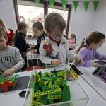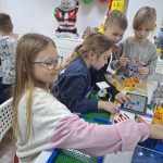 Uczniowie z klasy 2e, na warsztatach z LEGO® robotyki.
