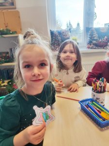 Lekcja biblioteczna w ramach „Klubu Przyjaciół Franklina”18 grudnia w bibliotece odbyła się kolejna lekcja biblioteczna w ramach Klubu Przyjaciół Franklina. Podczas zajęć dzieci wysłuchały bajki pt. „Franklin i prezent świąteczny”, a następnie aktywnie uczestniczyły w pogadance na temat jej treści i przesłania. W dalszej części spotkania dzieci kolorowały bombki, którymi wspólnie ozdobiły naszą biblioteczną choinkę, wprowadzając świąteczny nastrój.