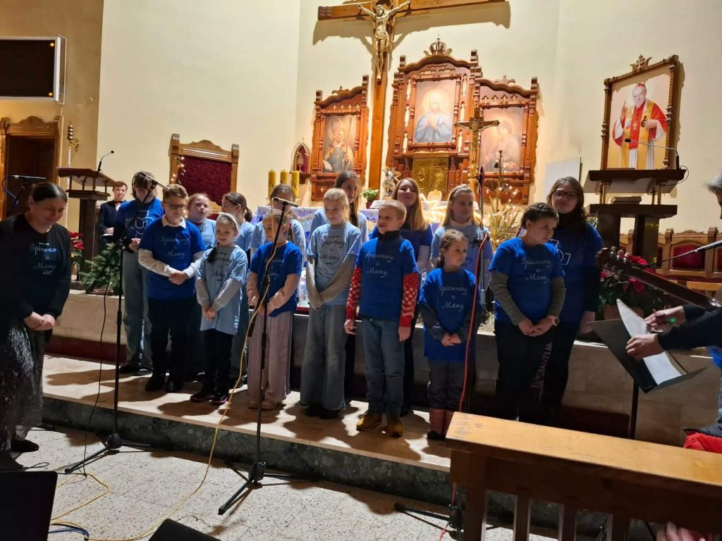 Na tym samym koncercie można było zobaczyć więcej znajomych twarzy. Wystąpiła schola Śpiewamy u Mamy, prowadzona przez Państwa Iwonę i Macieja Nawrot. W jej szeregach można było rozpoznać kilkoro uczniów naszej szkoły.