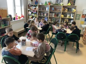 W bibliotece szkolnej odbyły się lekcje biblioteczne z okazji obchodów urodzin Kubusia Puchatka. Uczestnikami zajęć były grupy przedszkolne „0”.