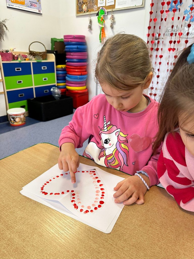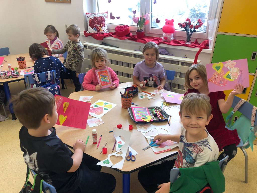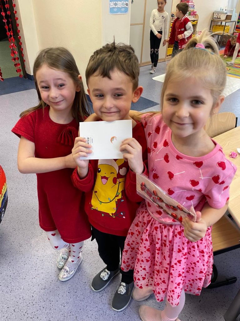 Rozmawialiśmy o tym, czym jest miłość, przyjaźń i wzajemny szacunek. Dzieci dowiedziały się, że Walentynki to nie tylko święto zakochanych, ale także okazja do okazywania sympatii kolegom, koleżankom oraz bliskim osobom. Przedszkolaki własnoręcznie przygotowały piękne kartki walentynkowe, które następnie wrzucały do specjalnej „poczty walentynkowej”. Dużo radości sprawiło dzieciom dekorowanie serduszek i wykonywanie prac plastycznych. To był dzień pełen uśmiechu, miłych słów i serdecznych gestów.