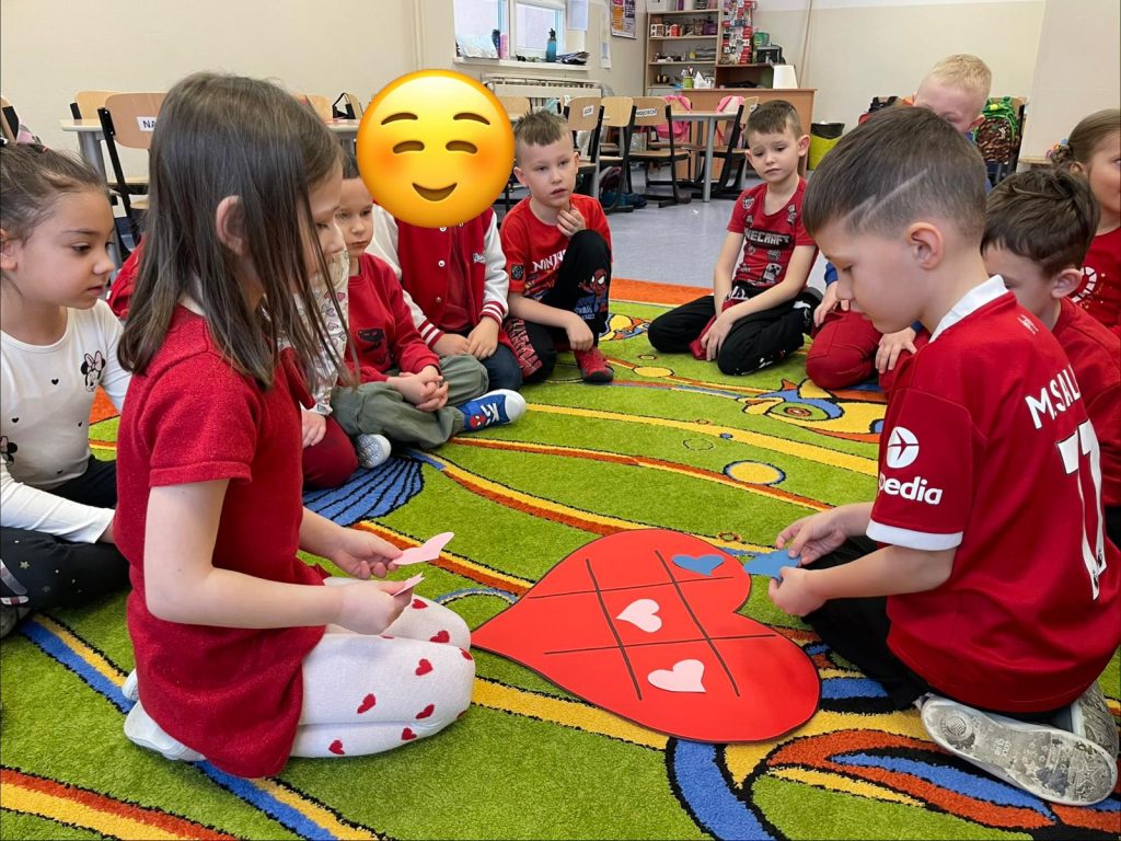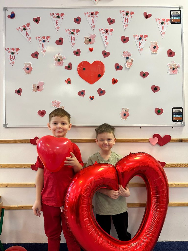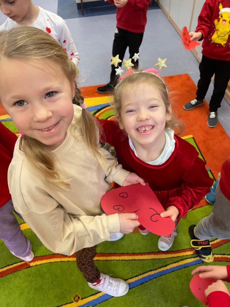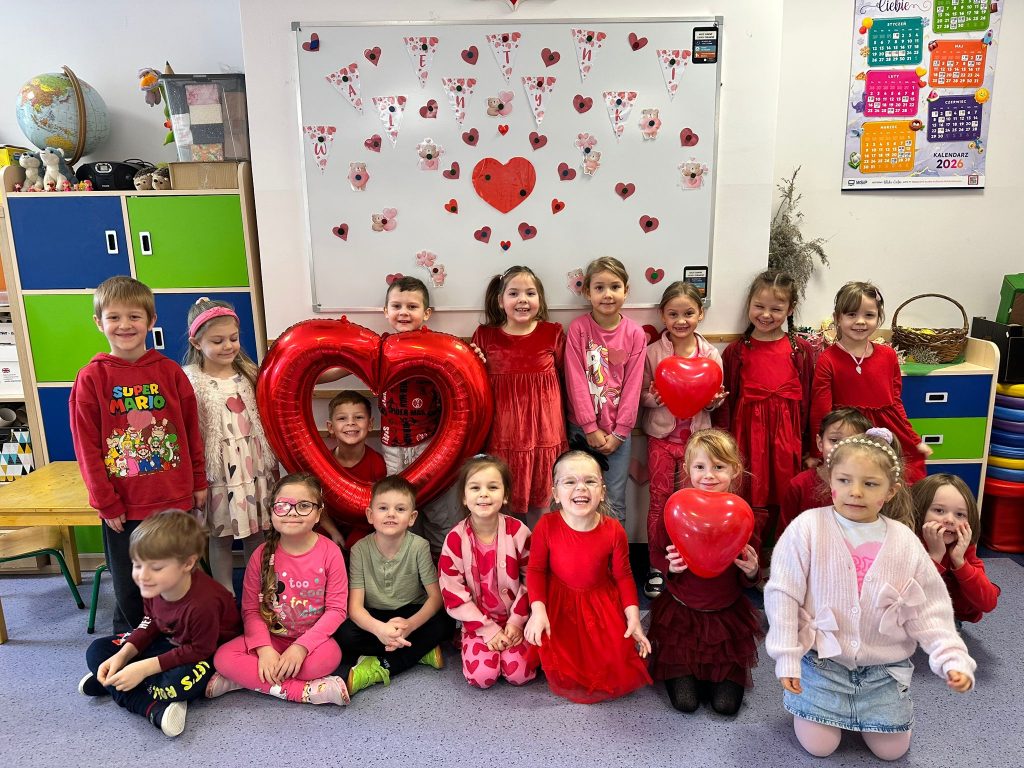 W naszym przedszkolu obchodziliśmy Walentynki – dzień pełen radości, życzliwości i przyjaźni. Tego dnia dzieci przyszły ubrane na czerwono i różowo, aby podkreślić wyjątkowy charakter święta.