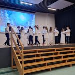 To tytuł koncertu zimowego, który przygotowali i zaprezentowali w auli szkoły uczniowie z klasy 2e, 4e, 7c, 8e pod kierunkiem pań Ewy Bobrowskiej i Małgorzaty Malek. Inspiracją do napisania scenariusza, doboru piosenek i choreografii była uwielbiana przez dzieci zima, którą kojarzą one z lepieniem bałwana, jazdą na sankach, dźwiękami dzwonków, wirującymi na wietrze płatkami białego puchu, jazdą na łyżwach i spełnianiem się bożonarodzeniowych życzeń. Roztańczone anioły, uczennice z szarfami, dziewczynki, jeżdżące na rolkach oraz uczniowie wykonujący piosenki w języku polskim, angielskim, niemieckim i ukraińskim zabrali publiczność w baśniową podróż do krainy zimy. Było bajkowo, magicznie.